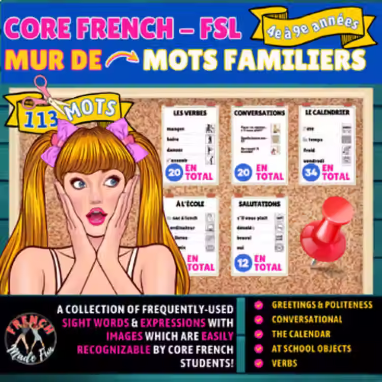 CORE FRENCH | FSL | MOTS FAMILIERS | SIGHT WORDS | MUR DE MOTS | AFFICHAGE