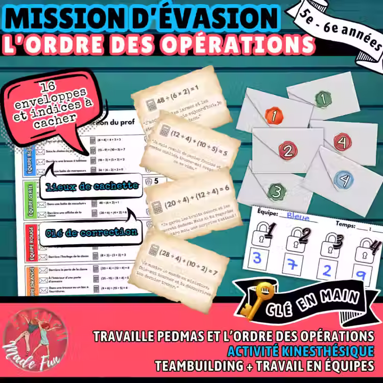 JEU/MISSION D'ÉVASION - ESCAPE - PEDMAS - ORDRE DES OPÉRATIONS - JEU D'ÉQUIPE